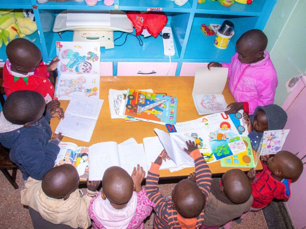 Children reading at Nyumbani’s Respite Care Centre.
